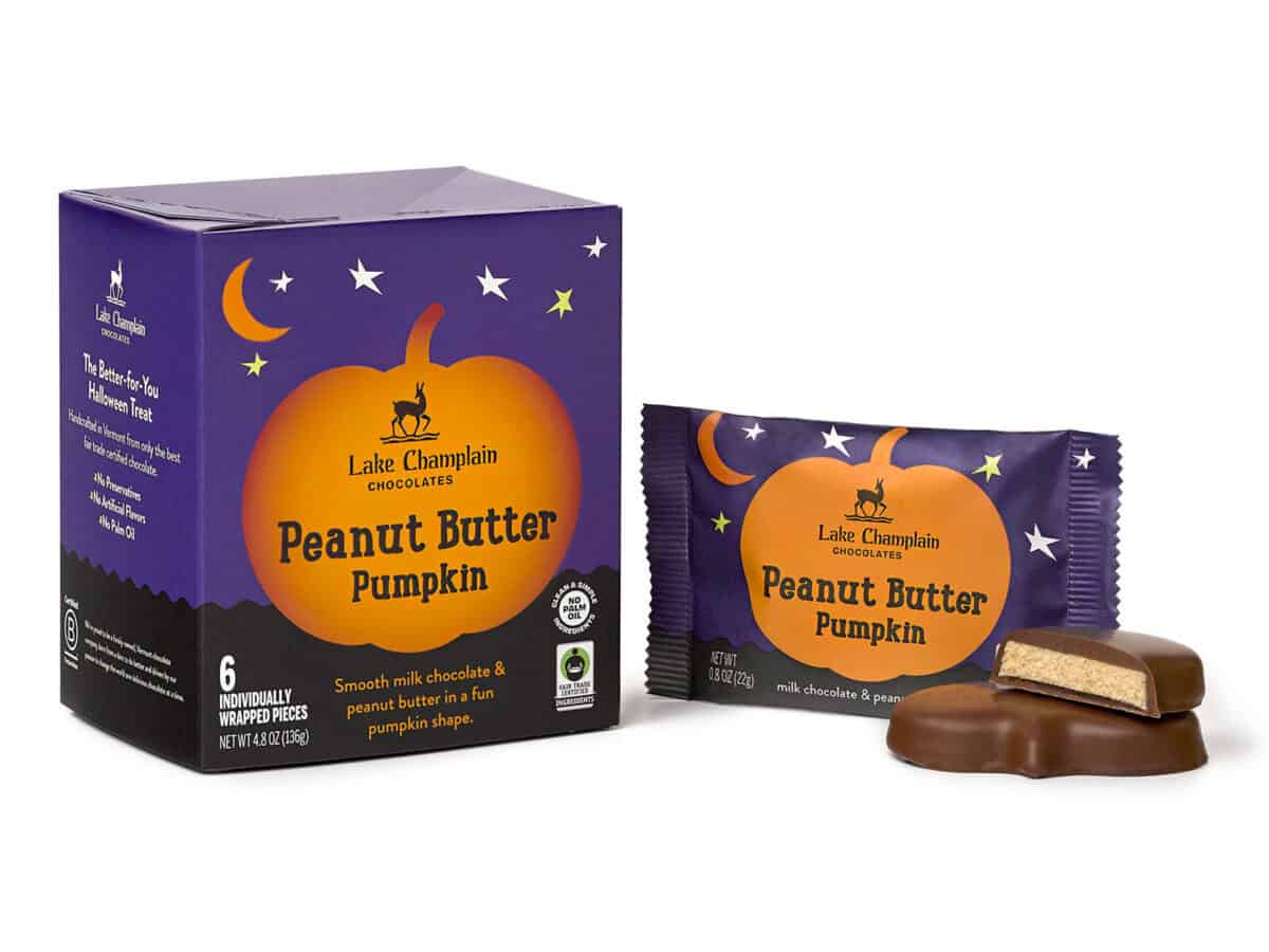 Lake Champlain has several options for Fair Trade and organic halloween candy, from crispy chocolate squares to peanut butter pumpkins and more.